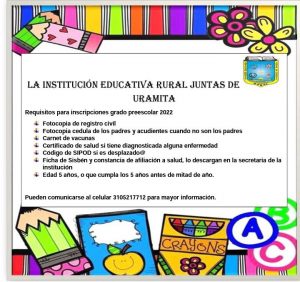 Matrícula • Todos los estudiantes que aspiren ingresa a la Institución Educativa Rural Juntas de Uramita, serán admitidos sin ningún tipo de discriminación por